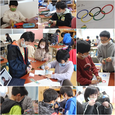 今日のミッションは「グループで協力して見本と同じオリンピックの輪を作ろう」です。半径何センチにするか相談が始まりました。