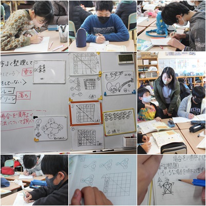 5種類のケーキから2種類選ぶ組み合わせは何通りあるでしょう。組み合わせの数え方についていろいろな方法を出し合いました。