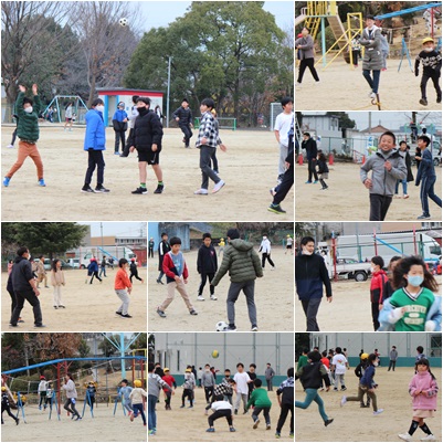 先週から暖かいこともあり、休み時間に多くの子どもたちと先生が運動場で元気いっぱい遊んでいます。ドッチボールやサッカー、バレーボール、ドロケイ、縄跳び、鬼ごっこ、遊具遊びと、それぞれの遊びを満喫しています。