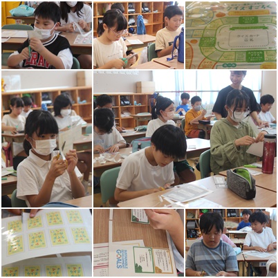 SDGsについて楽しく学ぶ準備をしていました。クイズカードや食品ロスカードの準備をしていました。全部そろうと、SDGsすごろくになるようです。楽しみですね。