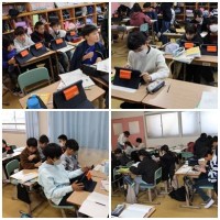 それぞれに配られたカードを順番にホワイトボードに貼っていきます。小さい方から貼る人もいれば、大きい方から下がってくる人もいます。考えながら、確かめながら皆で協力して行っていました。「もう一回やりたい」とリクエストがでましたが、隠された数字探しになりました。さらに、大盛り上がりです。楽しく学んでいます。