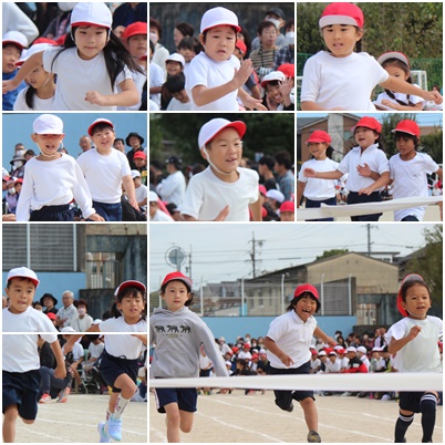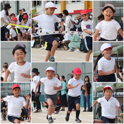 1年生にとっては、初めての徒競走。最後までがんばって走ります。2年生はスピードがありますね。