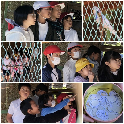 今日も大勢参加しました。初めて飼育小屋の中を案内してもらい、楽しそうでした。飼育委員さんが「鳥が驚くので、静かにしてあげてくださいね」とお願いすると、皆、上手に見学していました。明日が最終日になります。