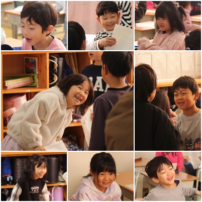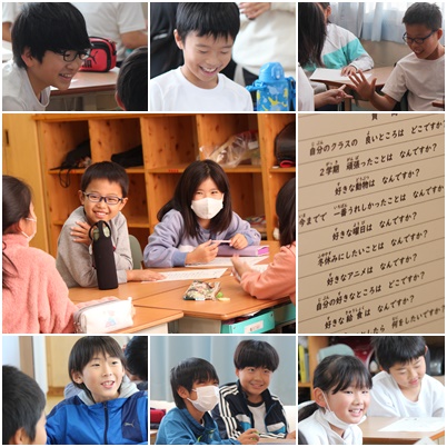 「質問じゃんけん その3」です。クラスの良いところや自分の好きなところ、冬休みにしたいことなど、今までの質問に比べると自分の考えを答える質問が増えています。