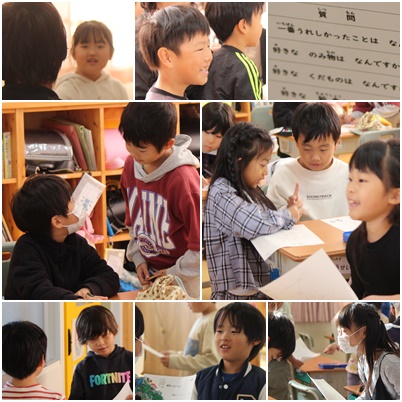 照れくさそうに話したり、真剣に聞き入ったり、自然に話す聞く活動が広がっていきます。会話を楽しむことができるようになってきました。
