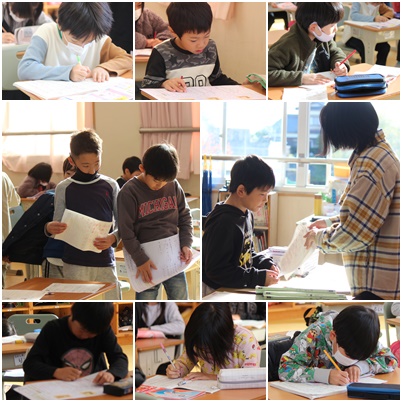 テストが返ってきました。直しをして、提出します。その後は、漢字ドリルや漢字小テストと自分がまだ終わっていない課題を行います。担任に聞かなくても自分で考え、集中して取り組んでいる様子に成長を感じます。