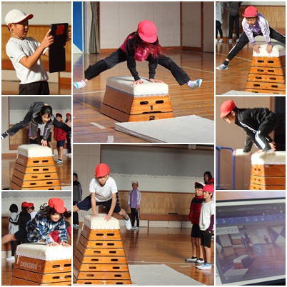 何度も跳んで、友達に跳んでいるところを撮ってもらっていました。この後、動画を分析して、課題を見つけます。跳んでいるときには分からないことも動画を見るとよく分かります。また、上手くできたときとできなかったときを比べると何が違ったか理解できますね。