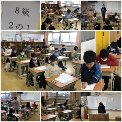 ボランティアさんに監督をしていただき、漢字検定を行いました。子どもたちは、冬休みの課題として自主的に漢字の勉強をしたり、問題集を購入して計画的に取り組んだりしていました。「去年までの学年の漢字も5回も見てきたよ」と言っている人もいました。