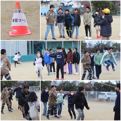 2時間目と3時間目の間の長い放課に、体育委員が縄を回してくれます。8の字跳び、連続跳び、練習コーナーなどいろいろな場が用意されています。初日、2日目は5年生がたくさん参加しました。