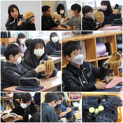 大谷選手寄贈のグローブが各クラスにまわります。6年1組では、朝一番に紹介され、子どもたちも手に取って見ていました。