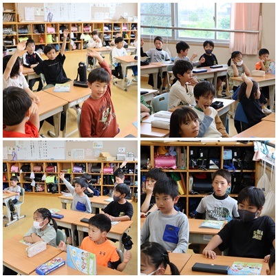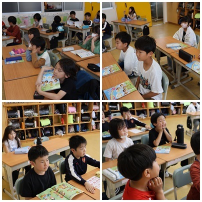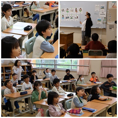 ごきげんいかが?と聞かれたときに答えるいろいろな表現を学びました。どの時間でも「hungry!お腹が空いた!」と答える子が多く感じます。今日は3時間目、そろそろお腹も空く頃です。