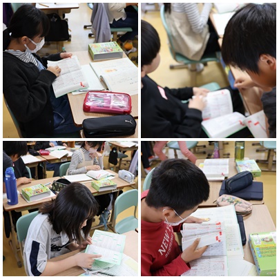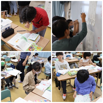 漢字辞典を使って、いろいろな漢字を見つけをしました。部首で探すとそれぞれの共通性も見えてきます。どの子も一生懸命漢字探しをしていました。