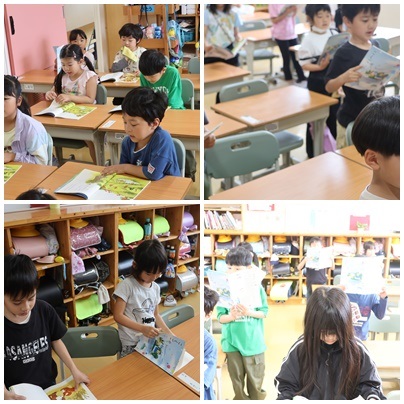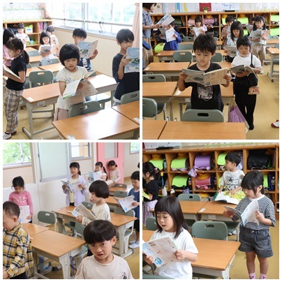 「はなのみち」のお話を読みました。姿勢よく立って読んでいます。まだページをめくるのが大変そうした。これから音読の宿題などをしていくうちに上手になるのでしょう。