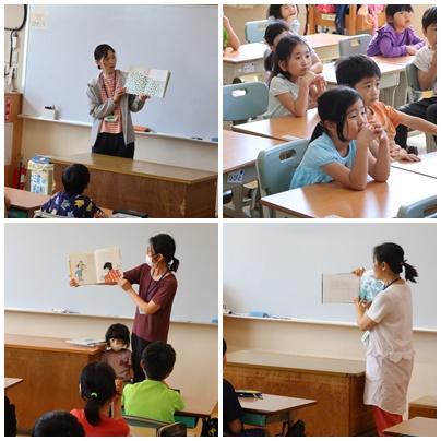 葉っぱの会による読み聞かせの日です。これですべてのクラスに入れたでしょうか。金曜の朝が楽しみです。