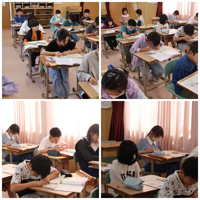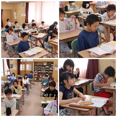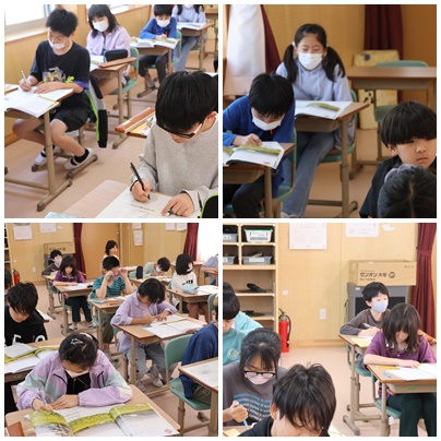 歌詞の意味を考えながら、浮かぶ情景を絵に表しています。曲の特徴に合った歌い方ができるようになりました。