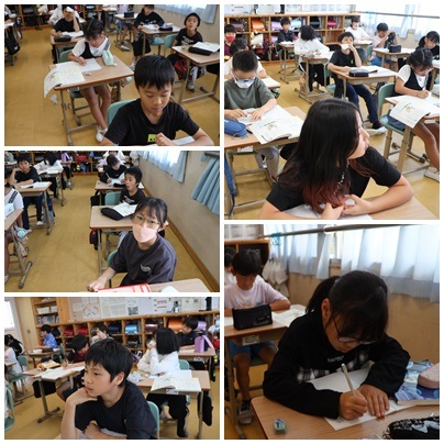 インタビューの質問を考えています。多くの学年でこの時期の国語にインタビューする内容があります。話すこと、聞くこと、そしてメモを取ることなど国語の基本がいっぱい詰まっています。