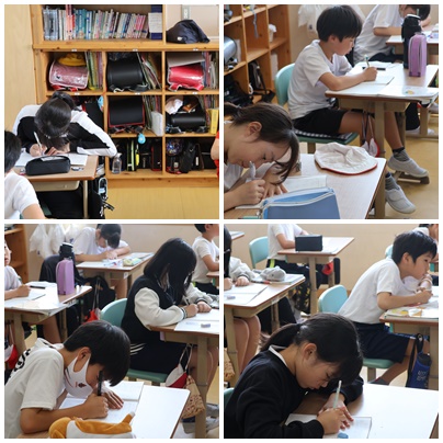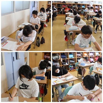 直方体の体積を求める公式はどうなるか考えました。ヒントとなりそうな計算をしていきながら、自分なりの言葉で公式を導き出していました。