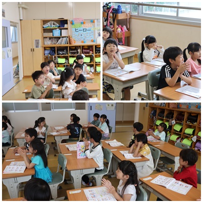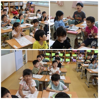 「たん」と「うん」のリズムに合わせて手拍子をしました。このリズムに合わせ、今度は楽器で打ちます。