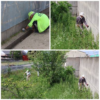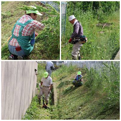 プール開きを前に、草刈り隊の方々がプールの周りの草を刈ってくださいました。あっという間に、すっかりきれいになりました。ありがとうございました。