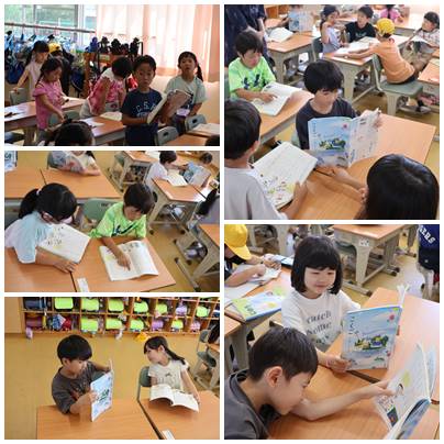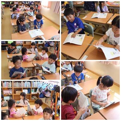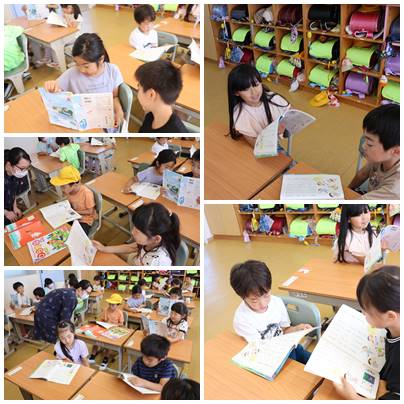 「あいうえお」の言葉の遊びの歌を、隣同士順番に読みました。リズムがよく、歌うように読めています。