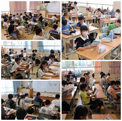 火曜の朝は読書タイムです。みんな静かに本と向き合っています。