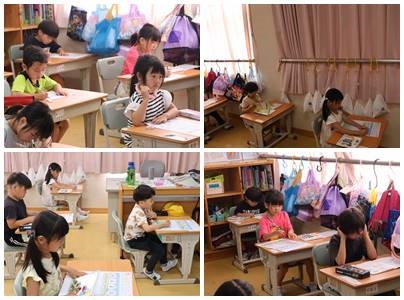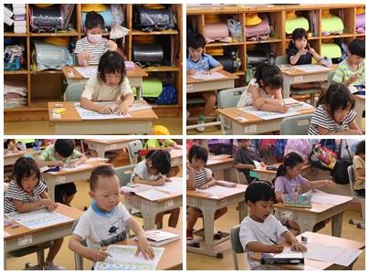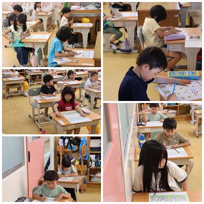 算数のテストをしていました。最後まで一生懸命がんばっています。
