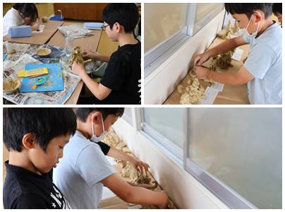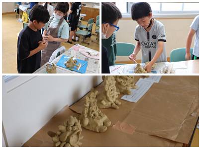 5年生の粘土作品制作、テーマは「シーサー」です。自分なりのシーサー、どんな姿になったでしょう。