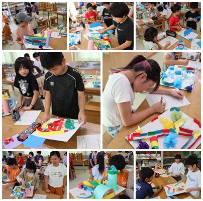 コースをつくって、ビー玉を転がす「コロコロガーレ」が完成しました。振り返りをかいたり、友達の作品で遊んだりしました。満足のいく創作活動になりました。