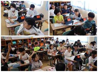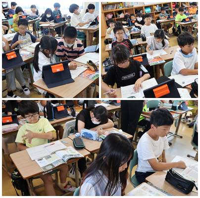 風水害についてたくさんのことを学んできた4年生。今日は、風水害の専門家として、風水害からくらしを守る方法を、新人に教えようというテーマで話し合いました。県や国の取り組み、地域での取り組み、家庭での取り組みなど、さまざまな方面からのアドバイスができたようです。
