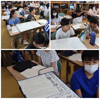 よりよい文章にするために推敲の仕方を学んでいます。今日は、文章の構成を考えながら推敲する練習をしました。どんな構成にするとより説得力が増すか、文章を並び替えながら理由をもとにして話し合うことができました。