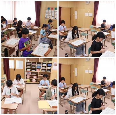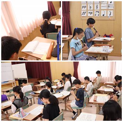 音楽室の方からリコーダーの素敵な音色が聞こえています。パッヘルベルのカノンです。6年生だけあって、高音も低音もとても滑らかで美しい響きを出しています。