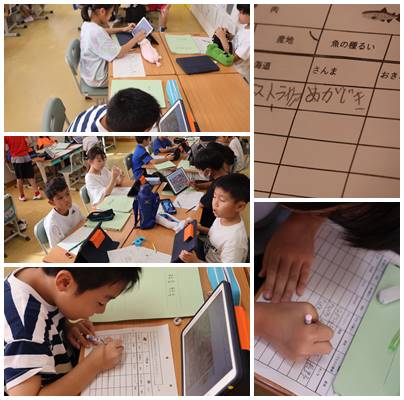 スーパーマーケットのチラシを見て、食品の産地調べをしました。国産のものはいろいろな県が、外国産のものは、いろいろな国があり、さまざまなところからスーパーマーケットに届いていることがわかりました。