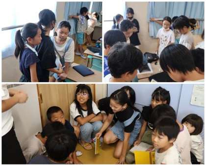 災害時の「自助」と「共助」とはどんなことか考えました。「自助」グループと「共助」グループに分かれ、それぞれのよいところを話し合いました。「自助」グループからは、「自分の身を守ることで他の人に迷惑をかけない」「自分の安全だからこそ、他の人を助けることに回ることができる」といった意見が、「共助」グループからは、「お互いに助け合うからこそ生存率が上がる」といった意見が出るなど、「自助」と「共助」について考えを深めていくことができました。