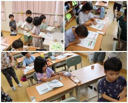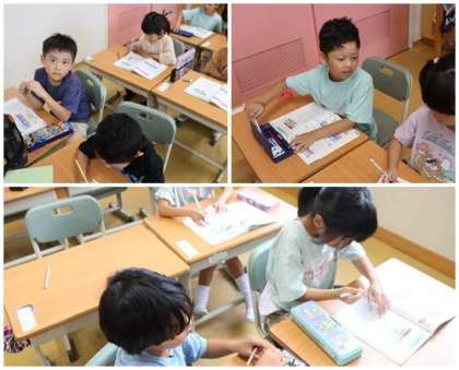 今まで習ったところの復習をしました。合わせて10になる数や3つ数のたし算です。しっかり練習してきたので、たくさん丸をもらっていました。