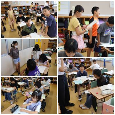 「綾はアヤを見つけることができたのだろうか」ということについて考えました。綾の心情の変化、戦争に対する見方、人との出会いなどを通して、どうアヤと向き合ったのでしょうか。友だちと意見を交流しながら、自分なりの考えをもつことができました。