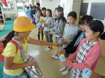 熊本募金に続いて、児童会では今週13日(金)まで緑の募金を行っています。