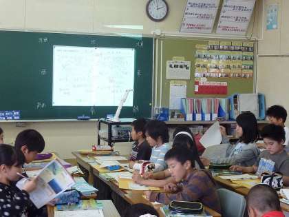 最近の授業では様々な機器を使っていますが、今日は社会の授業の様子を紹介します。