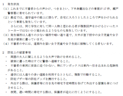 ご家庭でも重ねてお子様にお話しいただくとともに、十分ご注意いただくようお願いいたします。