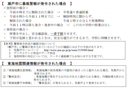 瀬戸市内小中学校 長根小学校所在地 後援事業配布チラシ(瀬戸市教育委員会)