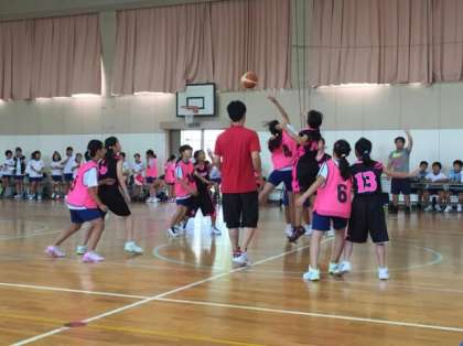 子どもたちは、これまでの練習の成果を出そうと、縦横無尽にコートを走り汗びっしょりでした。