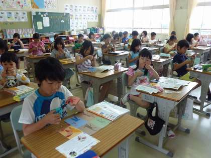 ひと言も話さずに、ハサミを持って集中している3年生。