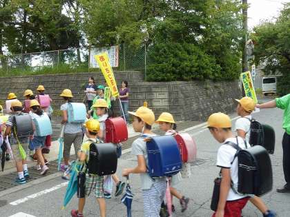 夏休み明けで、まだ生活のリズムがつかめずに眠そうな子もいますが、たくさんの元気なあいさつが帰ってきました。