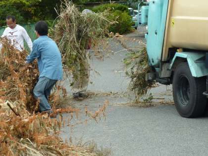 刈り取った草は、別の学校の用務員さんにパッカー車で来てもらい、回収していただきました。