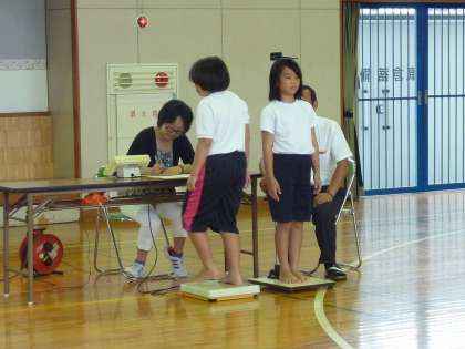 6年生から順に体育館に入り、静かに並んで待ちます。
