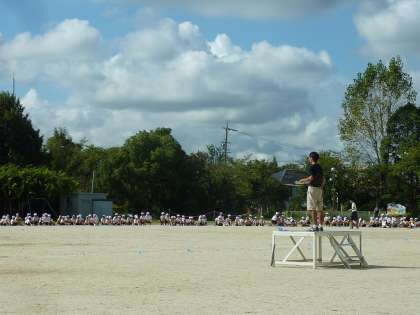 10月1日(土)の運動会に向けて、朝の全体練習が始まりました。