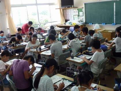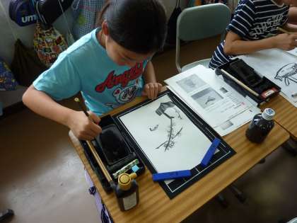 習字の授業かと思いきや、6年生が水墨画の授業を行っていました。