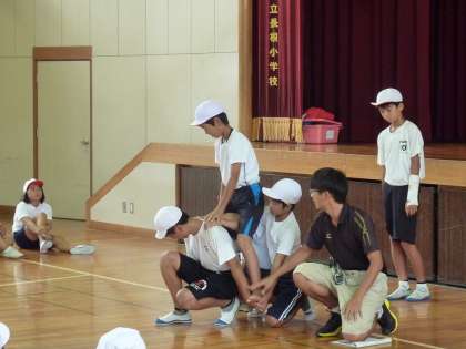今日は、初めての騎馬作りということで、先生の指導のもと、安全に動くことができるようポイントを聞きながら進めています。