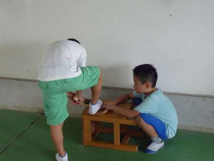 小さな部品はなかなか切りにくそうでしたが、足でしっかり押さえてがんばっています。