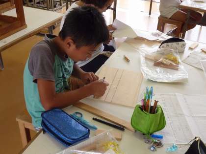 室内では、定規を上手に使いながら、長さを測っていきます。