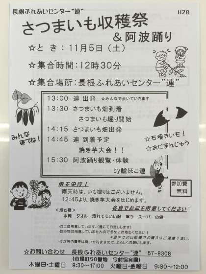 11月5日(土)には、「さつまいも収穫祭&阿波踊り」が予定されていますので、皆さんお楽しみに!